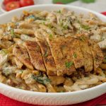 -Serving plate mein pasta aur cooked chicken slices dal dein aur fresh parsley garnish ker ka serve karein!