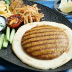 -On baking paper,place meat ball & press,place another butter paper & press with patty presser into flat thin patty (6-inches).
