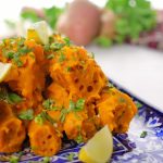 -In same cooking pot, add potato mixture & strained lotus root stem mix gently & cook on medium flame until thickens then add fresh coriander.