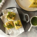 Cut into square pieces and pour tadka evenly on the dhoklas & serve!
