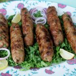 With the help of wet hand,take small quantity (85g) of mixture,make a ball & skew on metal skewers.