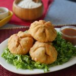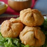 Now add chapli kabab mixture (3 tbs) in the center of dough,fold and seal the edges and make a round shape kachori (makes 8-10).