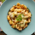 Mozzarella cheese,cheddar cheese aur fresh parsley dal ker dhak dein aur halki ancch per cheese melt hunay tak paka lein (approx. 2-3 minutes).