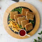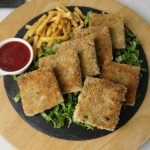Cut into four pieces and coat potato side of bread slice with breadcrumbs (makes 8 bread slices).