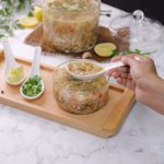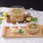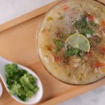 -Serving bowl mein lemon juice,tayyar soup,kali mirch crushed,hara dhania,lemon slice dal dein & garam serve karein!