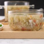 -Take out chicken pieces & shred chicken then strain stock & set aside.
