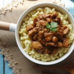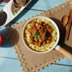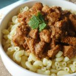 Serving dish mein boiled macaroni aur korma masala dal ker serve karein!