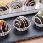 -Drizzle white chocolate & decorate with chocolate flowers & refrigerate until set (makes 12 truffles).