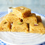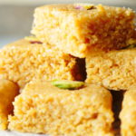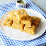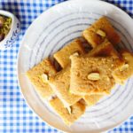 Desired shapes mein cut karein aur pista sa garnish ker ka serve karein.
