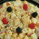 Dish out ker k upper sa chart masala aur badam (chopped) sprinkle karein,berries sa garnish karein.