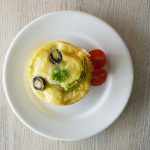 Add salt,black pepper powder,cheddar cheese,green onion leaves,fresh parsley,cooked onion mixture and whisk well.