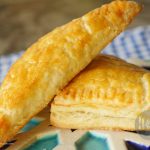 Roll out puff pastry,cut in desired shape with cutter,egg wash,add egg and cheese filling,fold and gently press with fork to seal and egg wash again.