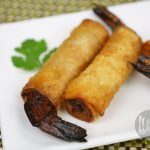 Take spring roll wrap and place prawn, slightly fold the sheet and roll the prawn and apply flour mixture.