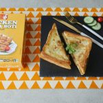 On bread slice,add & spread prepared chicken filling,top with another bread slice and press evenly with the help of the plate.
