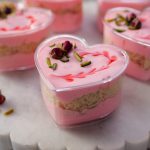 -In a serving cup,add prepared rose cream,pistachios,almonds,syrup coated pheni & spread evenly then add prepared rose cream & garnish with rose syrup,pistachios & dried rose buds (makes 8-9).