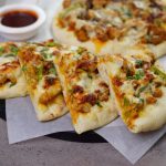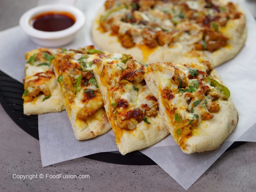 A flatbread layered with harissa chicken and mushrooms — simple yet unforgettable. Every slice brings a perfect balance of flavor. #happycookingtoyou #foodfusion #araywahh