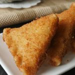 Now coat samosa into fry flour mixture then dip into beaten eggs and coat in breadcrumbs (makes 12-15).