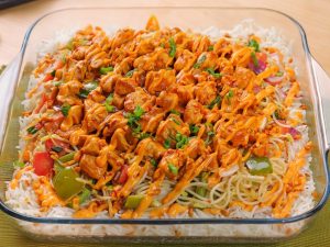 -In a small bottle,add olive oil,vinegar,lemon juice,honey,cinnamon powder,sumac powder,cumin seeds, black pepper powder,pink salt,close the lid & shake well.