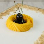 -Decorate with mango slices,cherries & crushed whole wheat biscuits.