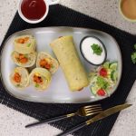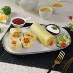 -Grease pan with cooking oil,add whisked eggs & cook on low flame for 1-2 minutes than fold the potato roll on cooked egg & move to one side of pan.