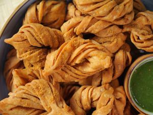 Spatula ki madad sa ek side ko filling k upper dal dein.