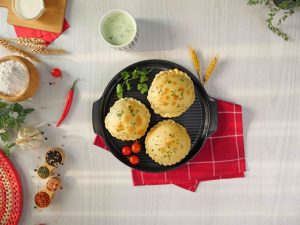 -Air Fryer mein rakh kar 170°C par 3-5 minutes air fry kar len. (8-9 tayar honge)