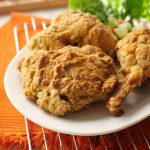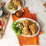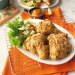 Crispy air fried chicken ko sauce & salad ka sath serve karen.