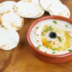 Now dish out hummus, make well with a spoon and drizzle olive oil and paprika. Add 1-2 black or green olive for garnish.