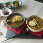 Add water and mix well, bring it to boil and remove scum then cover & cook on medium flame until chicken is tender and stock is reduced to half (approx. 1.5 hours).