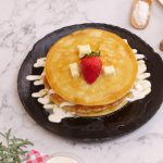 -Drizzle cream in between pancakes,add butter,drizzle maple syrup & serve!