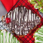 -Caramelized croissant par cream frosting spread karein,chocolate ganache lagayein,chocolate chips daalein aur cherry se garnish karein.