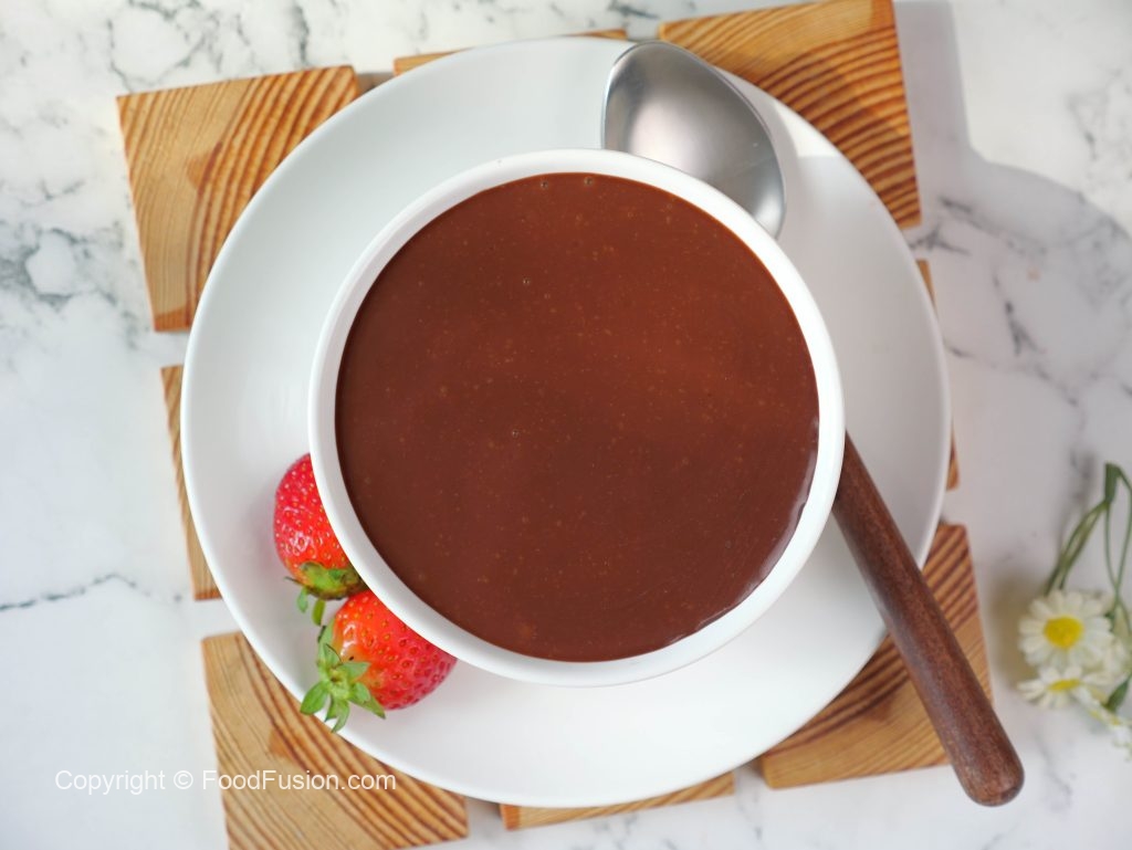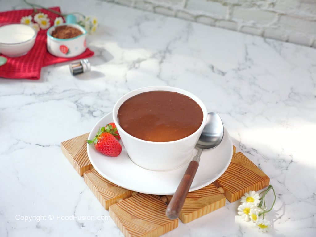 -Add milk, cooking oil, mix well. Set aside. (chocolate sauce is enough for 4 servings)