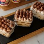 Cut ladyfinger biscuits in half and dip the ladyfingers into dissolved coffee one at a time.