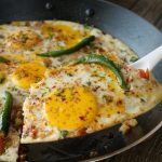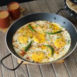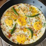 -Ek,ek ker ka anday shamil karein,lal mirch crushed aur hari mirchein dal ker dhak dein aur halki ancch per 6-8 minutes kliya paka lein.