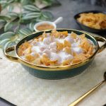 -Serving dish mein soaked phulki,tayyar meethi dahi & chaat masala dal dein aur papri sa garnish ker ka serve karein.