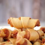 -Her triangle ko roll out ker ka croissant shape bana lein aur end ko properly seal ker lein (makes 36).