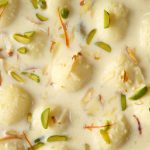 -In boiling milk,add prepared balls & cook on very low flame until they float on the surface & increase in size (don’t stir),cover & cook on low flame for 10 minutes.