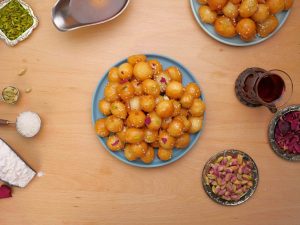 -Garnish with sesame seeds, rose petal, pistachios, pour some prepared sugar syrup & serve!