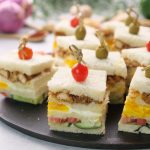 -Four bread slices per mayonnaise dal dein,ek slice per kheera aur tamatar dal dein aur dosray slice per cooked anda dal ker namak aur kali mirch crushed chirak dein.