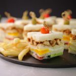 -Spread prepared bbq chicken on third bread slice then flip fourth bread slice over it to make a sandwich & trim edge (makes 4).