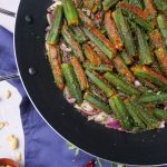 -Add stuffed okra,fresh coriander,cover & cook on low flame for 4-5 minutes & serve!