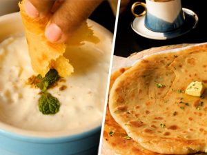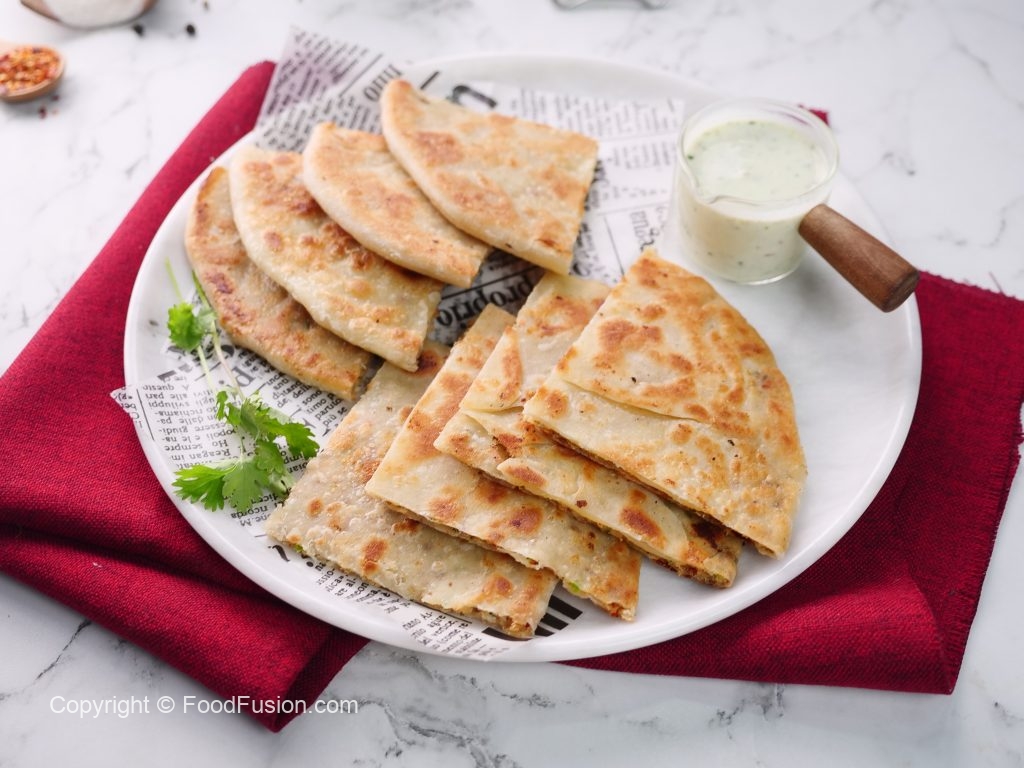 -Heat griddle,place paratha,add clarified butter & fry from both sides until golden brown (makes 6).