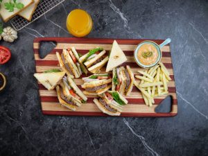 -Ab griddle ko butter se grease karein, bread slices dono sides se toast karein aur side par rakh dein.