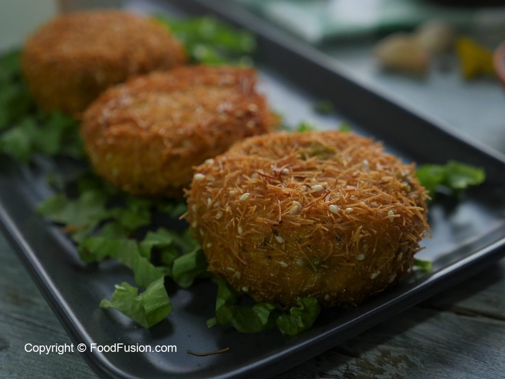 Now dip cutlets into beaten eggs and coat in crushed vermicelli.