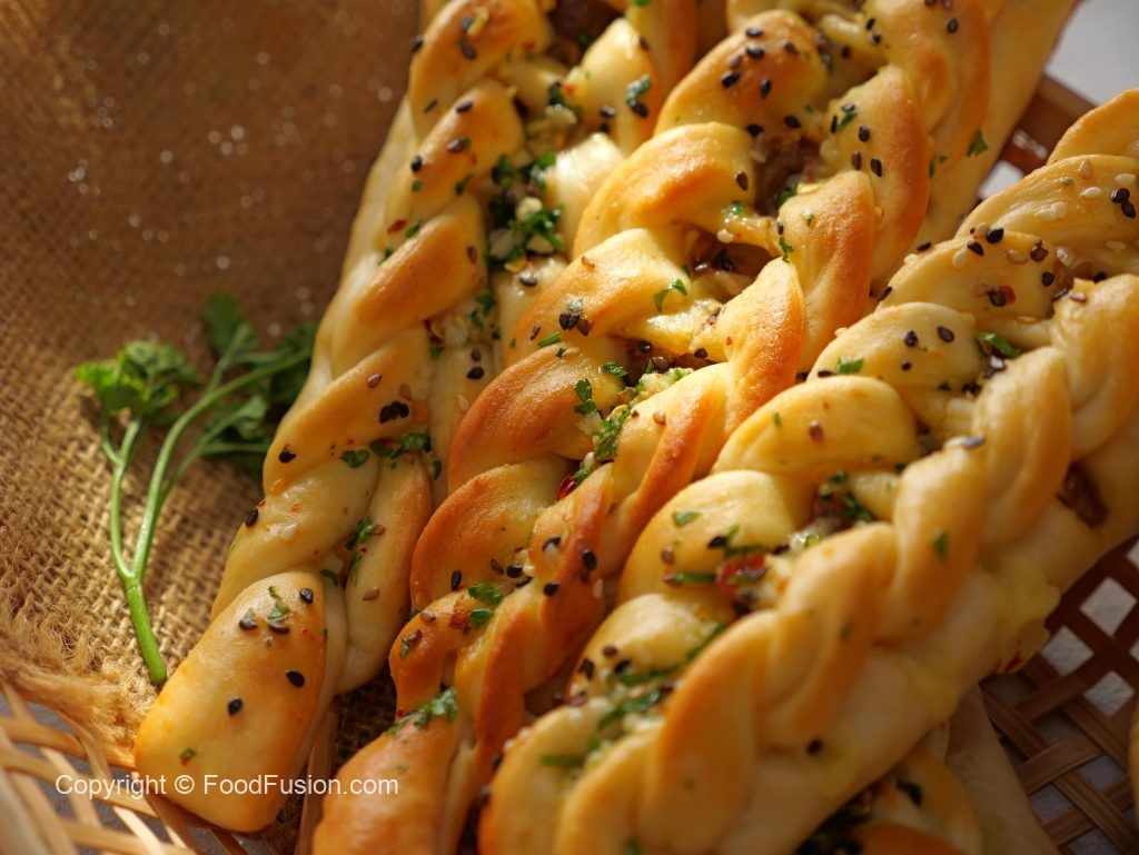 -Add mix cheese & apply water in the corners with the help of brush,carefully fold the braided side over the filling,sealing the edges gently.
