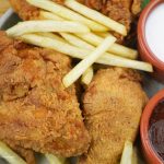 Once chicken completes its marinating time, coat the chicken in flour mixture, then dip in beaten eggs and milk mixture and again coat in flour mixture. Do not keep for long and asap place in oil for frying. Fry on low-medium heat and do not turns around too much the coating may break.