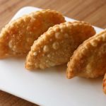 Take a dough,add chicken filling and mozzarella cheese,apply water at the edges,fold it and press and seal the edges with cookie cutter.