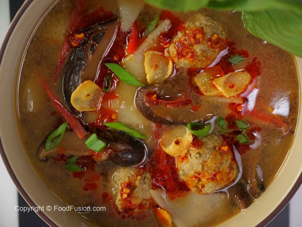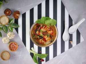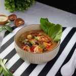 -In a serving bowl,add wonton soup,bok choy leaves,chilli oil,spring onion leaves,fried garlic & serve!