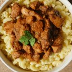 Serving dish mein boiled macaroni aur korma masala dal ker serve karein!