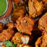 -Baisan,cornflour,baking powder aur hara dhania dal ker ache tarhan mix ker lein.
